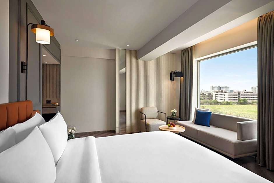 The warm and welcoming atmosphere boasts air conditioning, 24-hour front desk service, and non-smoking rooms, ensuring your comfort at every turn. Whether you're lounging in the garden, unwinding with a refreshing drink at the bar, or enjoying kid-friendly meals, each moment at the Ramada Encore will surely bring a smile to your face. So, pack your bags and soak in the vibrant essence of Indore from this splendid base!